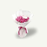 Bouquet noué à la main composé d'une orchidée blanche et de 20 roses roses, délicatement réalisé dans un emballage rose pâle, doux, romantique et d'une élégance intemporelle.