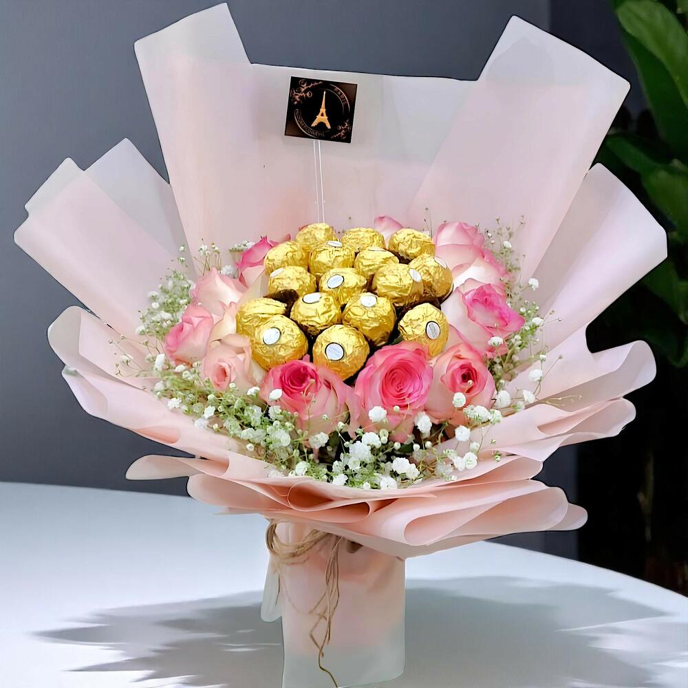 Ferrero rocher - 19 pce Pink rose - 18 pce Gypsophila - 7 pce