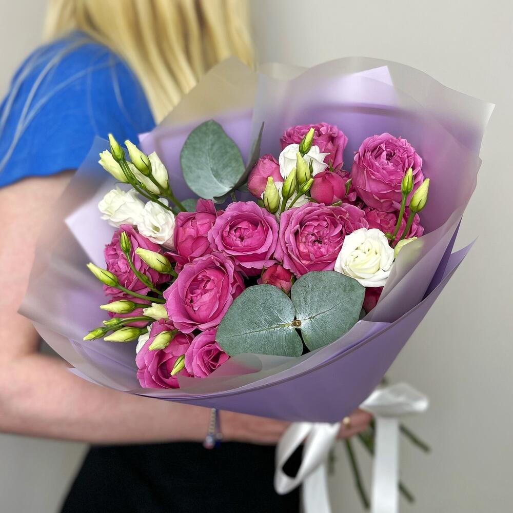 Bouquet délicat de roses pivoine et d'eustomas