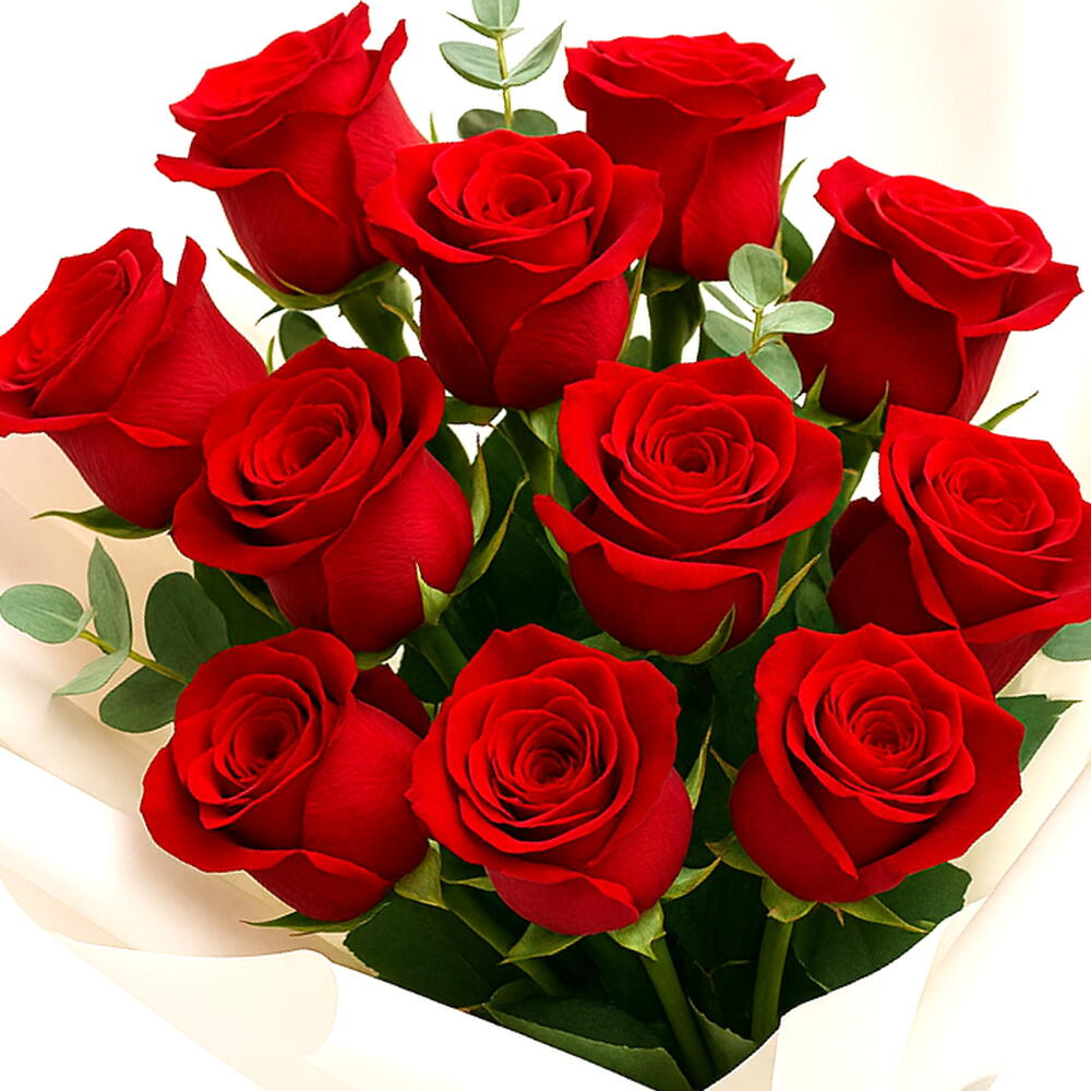 Un bouquet intemporel de 12 roses rouges de première qualité, sélectionnées à la main pour leurs pétales veloutés et leur couleur cramoisie profonde et romantique. Disposé en spirale épurée avec de l'eucalyptus frais, ce mono-bouquet élégant est parfait pour les anniversaires, les fêtes d'anniversaire, les surprises romantiques ou les moments sincères « juste parce que ». Enveloppé dans un papier mat haut de gamme et fini d'un ruban en satin, il est livré prêt à être photographié et magnifiquement présenté. Des tiges fraîchement récoltées assurent un parfum durable et une couleur éclatante. Livraison le jour même disponible dans tout Dubaï. Envoyez aujourd'hui un geste d'amour classique.