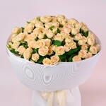 Une composition onirique et élégante conçue pour captiver par sa beauté douce et intemporelle. Ce bouquet présente 69 délicates roses crème enveloppées dans un papier blanc immaculé, créant une présentation luxuriante et volumineuse qui paraît moderne, raffinée et luxueuse. Les subtils tons crème expriment chaleur, grâce et sophistication, tandis que l'enveloppe blanche met en valeur l'esthétique épurée et digne d'une boutique. Parfait pour les anniversaires, les fêtes d'anniversaire, les gestes romantiques ou pour offrir « juste parce que ». Idéal autant pour lui que pour elle, ce bouquet offre une expérience florale photogénique, haut de gamme et inoubliable — une expression douce, élégante et attentionnée d'affection et de sollicitude.