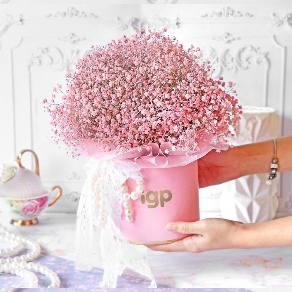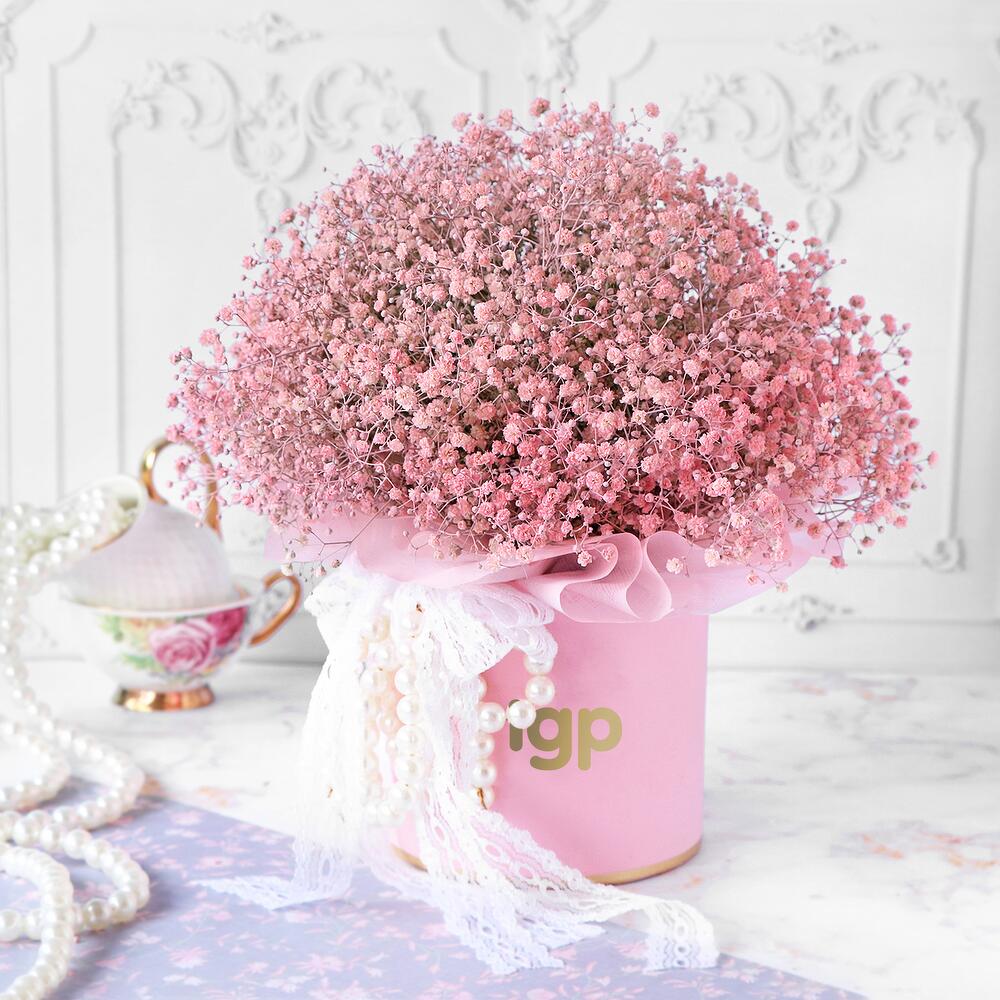 Transformez une occasion en moment de rêve grâce à ce charmant arrangement de gypsophiles rose pâle. Ces jolies fleurs sont du plus bel effet, où que ce soit. Un ruban en dentelle blanche en guise de touche finale ajoute à l'élégance ; le tout est conçu pour ravir votre être cher.