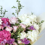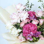 Bouquet élégant de roses mélangées – fleurs fraîches roses, blanches et violettes Faites plaisir à vos proches avec notre bouquet élégant de roses mélangées, qui présente une superbe combinaison de fleurs fraîches roses, blanches et violettes. Parfaitement enveloppé d'un feuillage luxuriant, ce bouquet est idéal pour les anniversaires et autres occasions spéciales. Confectionné avec soin, ce bouquet de fleurs éclatantes apporte une touche d'élégance à n'importe quel cadre. Commandez maintenant pour une livraison le jour même et égayez la journée de quelqu'un avec cet arrangement floral charmant !