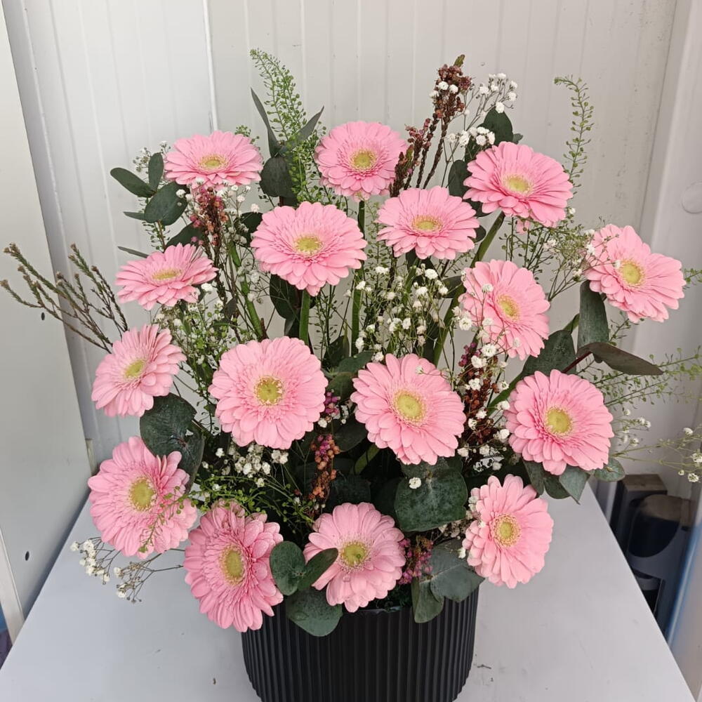 gérbera rose - 16 pce mélange de piliers verts - 2 pce