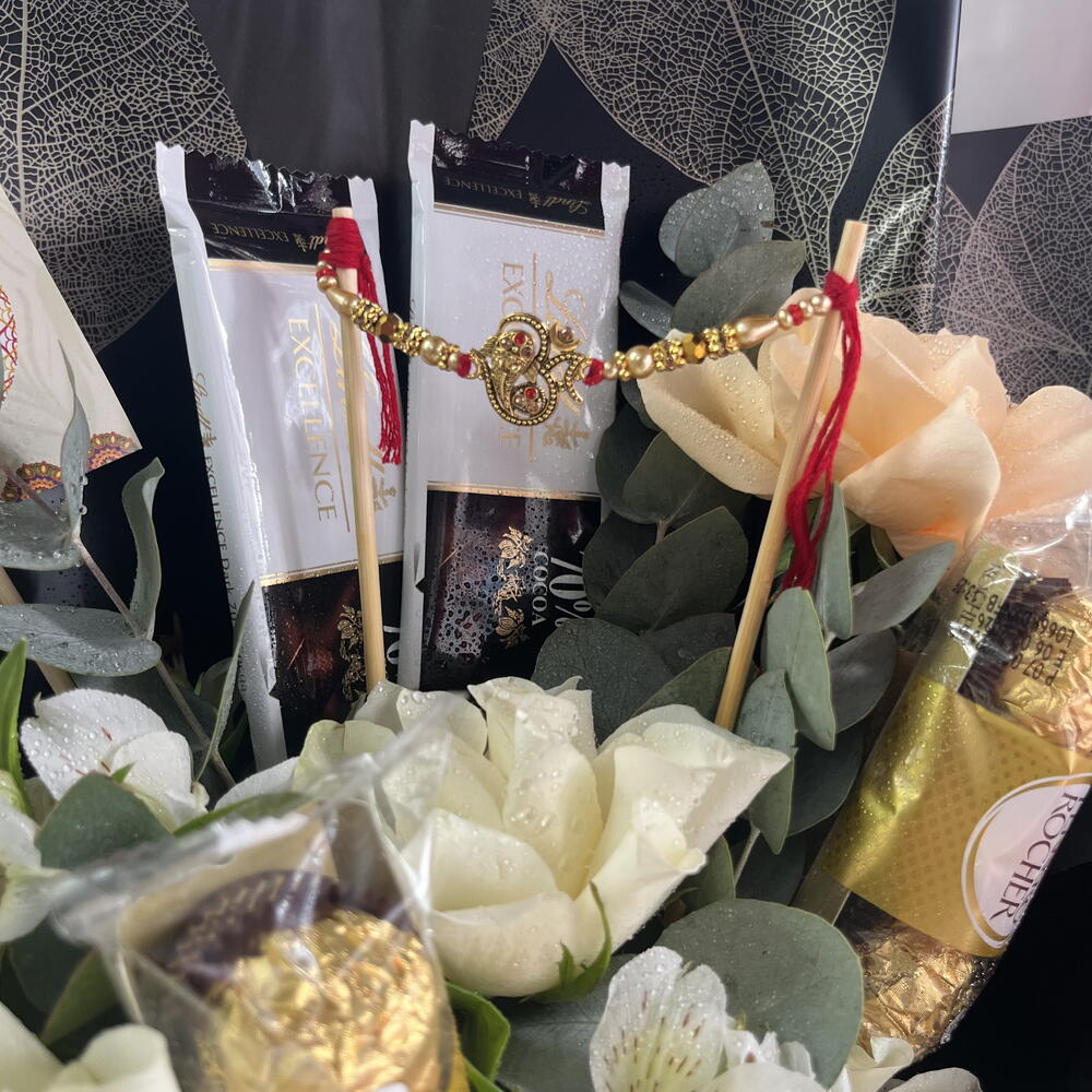 Célébrez l'esprit des fêtes avec notre Bouquet de Chocolats « Élégance et Éclat », où la beauté florale intemporelle rencontre la gourmandise irrésistible du chocolat. Ce cadeau luxueux est conçu pour rendre chaque célébration inoubliable, alliant émotion sincère, présentation raffinée et douceur exquise en une surprise des plus surprenantes. 🌹 3 Roses Pêche Douces et 3 Roses Blanches Classiques – Symboles de chaleur, de gratitude et d'amour pur, pour une ambiance festive idéale. 🍫 2 Boîtes de 3 Chocolats Ferrero Rocher – De délicieuses bouchées dorées pour ravir vos sens. 🍫 2 Tablettes de Chocolat Classique Suisse Lindt Premium – Une touche de luxe suisse pour sublimer votre célébration. 🎁 Emballage Noir Luxueux – Un contraste moderne et élégant qui donne au bouquet une allure saisissante et le rend prêt à offrir. Que vous célébriez Diwali en famille, envoyiez vos vœux à vos proches ou partagiez votre joie avec vos collègues, ce bouquet exquis est une délicate attention pour exprimer amour, gratitude et prospérité durant la Fête des Lumières. ✨ Créez un cadeau inoubliable. Commandez dès aujourd'hui le Bouquet de Chocolats Élégance et offrez un luxueux écrin de beauté et de douceur qui parle du cœur.