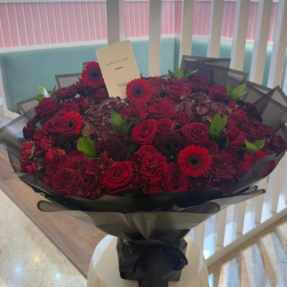 Succombez à l'enchantement de notre Spécial du Fleuriste, où charme et élégance s'entrelacent. Savourez la beauté de sa splendide composition : 8 ruscus gracieux, 5 œillets saisissants et 2 hortensias luxueux. Perdez-vous dans le charme de 12 roses somptueuses, sublimées par 5 délicates roses spray. Le bouquet se déploie en un spectacle délicieux avec 5 gerberas vibrants, 5 petits boutons délicats et 5 chrysanthèmes radieux, tous choisis exprès pour leur effervescence et leur beauté. Cet assortiment de fleurs constitue un mélange de couleurs vives et de textures séduisantes, le rendant parfait pour toute occasion.