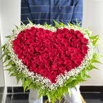 Celebrate love in its most beautiful form with our Premium Heart-Shaped 100 Red Roses Arrangement by Arabian Blossom, designed to create unforgettable moments.
