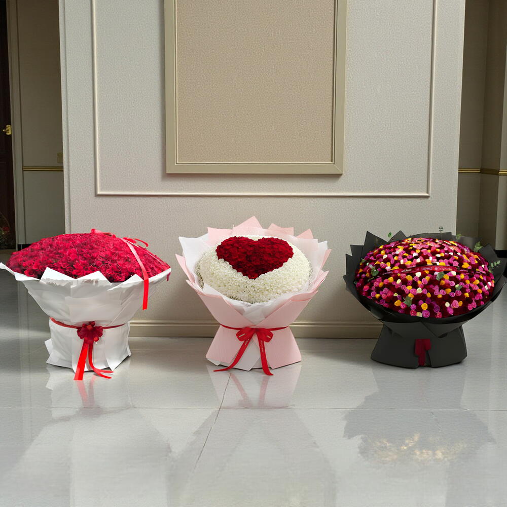 Des - 3 Magnifique plateau floral composé de 351 roses mélangées, 351 roses rouges 451 cœur rouge et blanc avec un cœur. Cet arrangement nécessite 7 heures de préparation. Veuillez indiquer votre numéro de contact dans les notes afin que notre équipe puisse vous contacter pour la livraison.