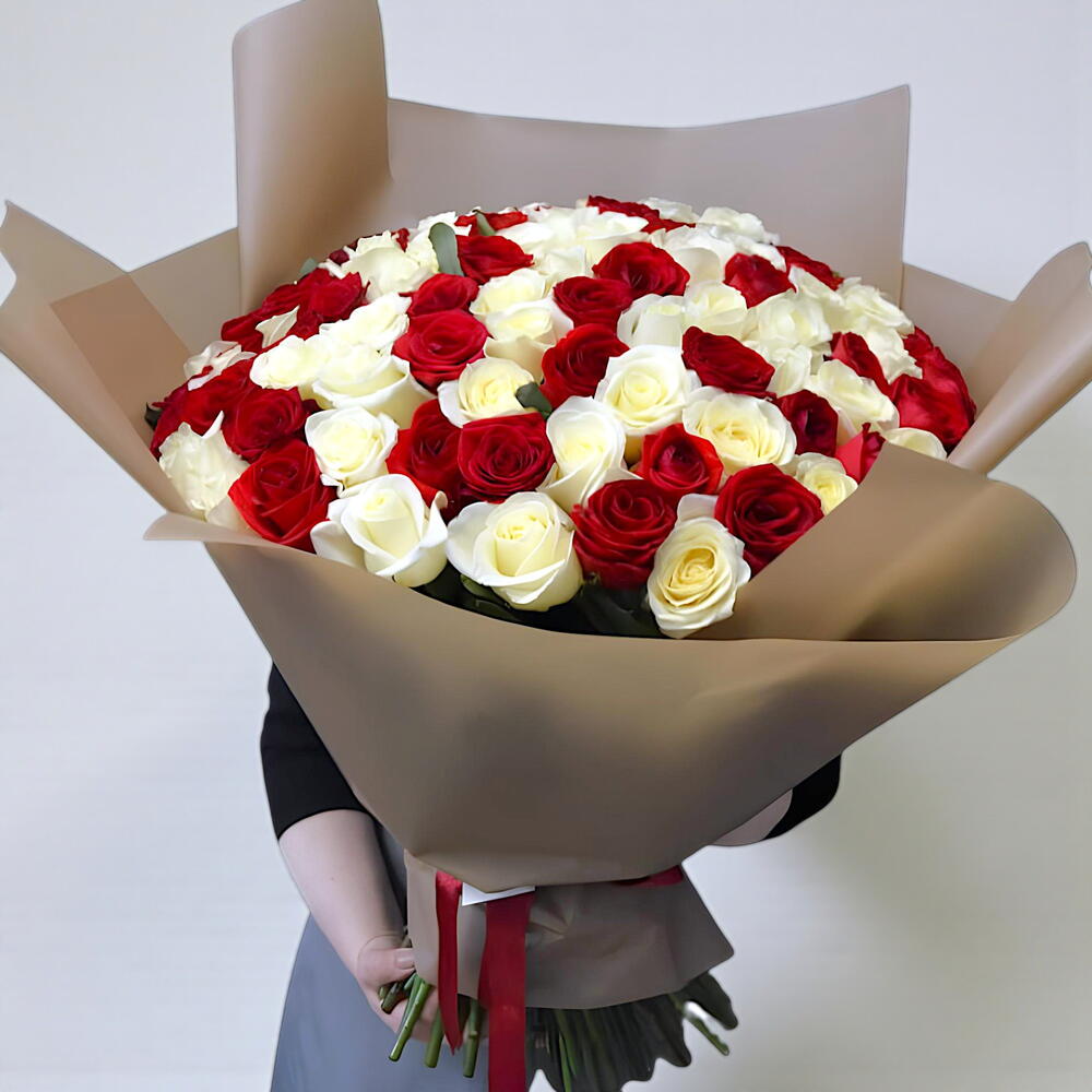 red roses - 30 pce roses blanches - 35 pce tige d'eucalyptus - 3 pce