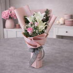 Gypsophila - 5 pce lys oriental - 1 pce pink roses - 3 pce