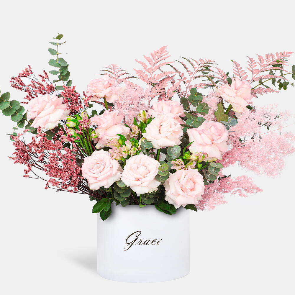 Cette composition florale offre une élégance et un charme inégalés. Délicate et élégante, elle embellira toute occasion de sa beauté radieuse.