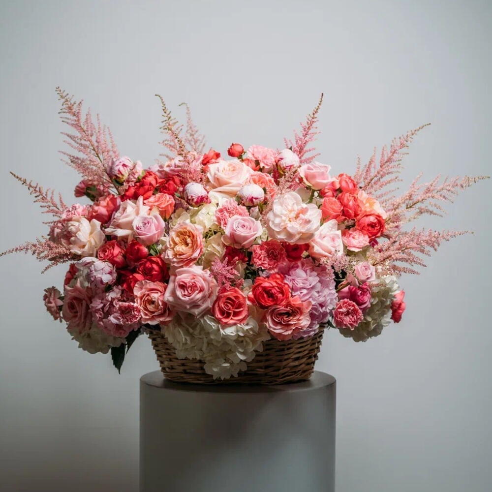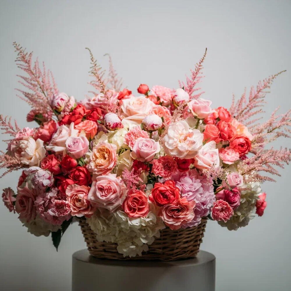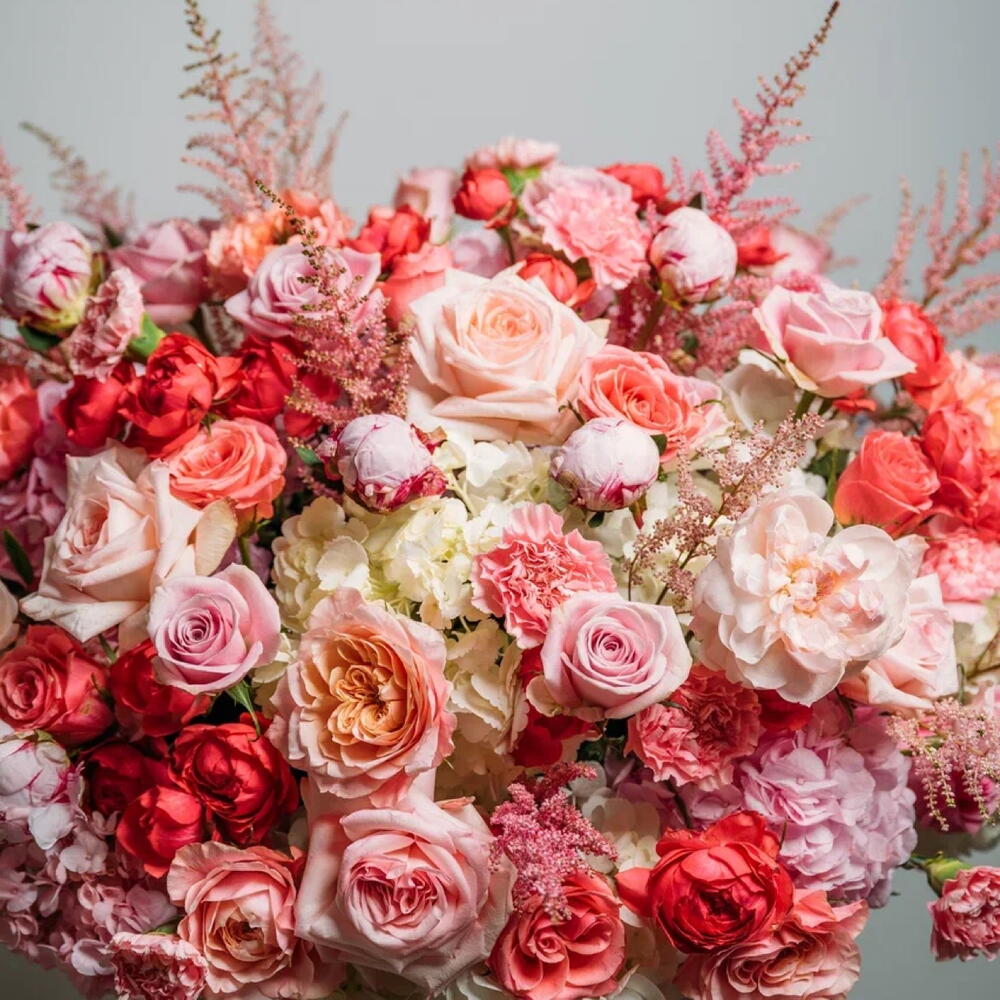Peony rose - 20 pce Peony - 5 pce carnation - 30 pce astilbe - 10 pce mélange d'hortensias - 30 pce rose David Austin - 12 pce peony spray rose - 20 pce