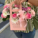 Chrysanthemum - 5 pce Pink rose - 6 pce Feuilles vertes - 3 pce carnation - 4 pce gypse - 3 pce