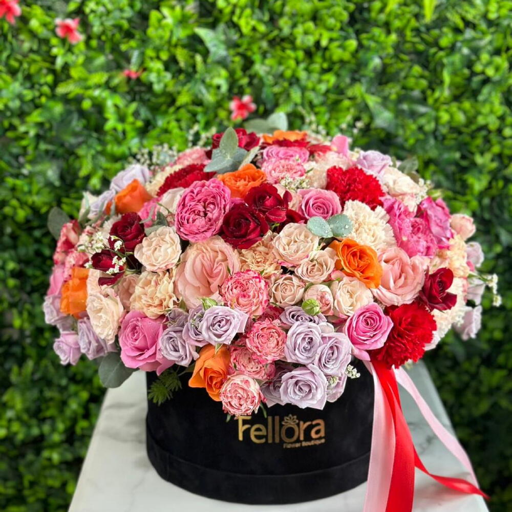 Boîte de fleurs aux couleurs mélangées
