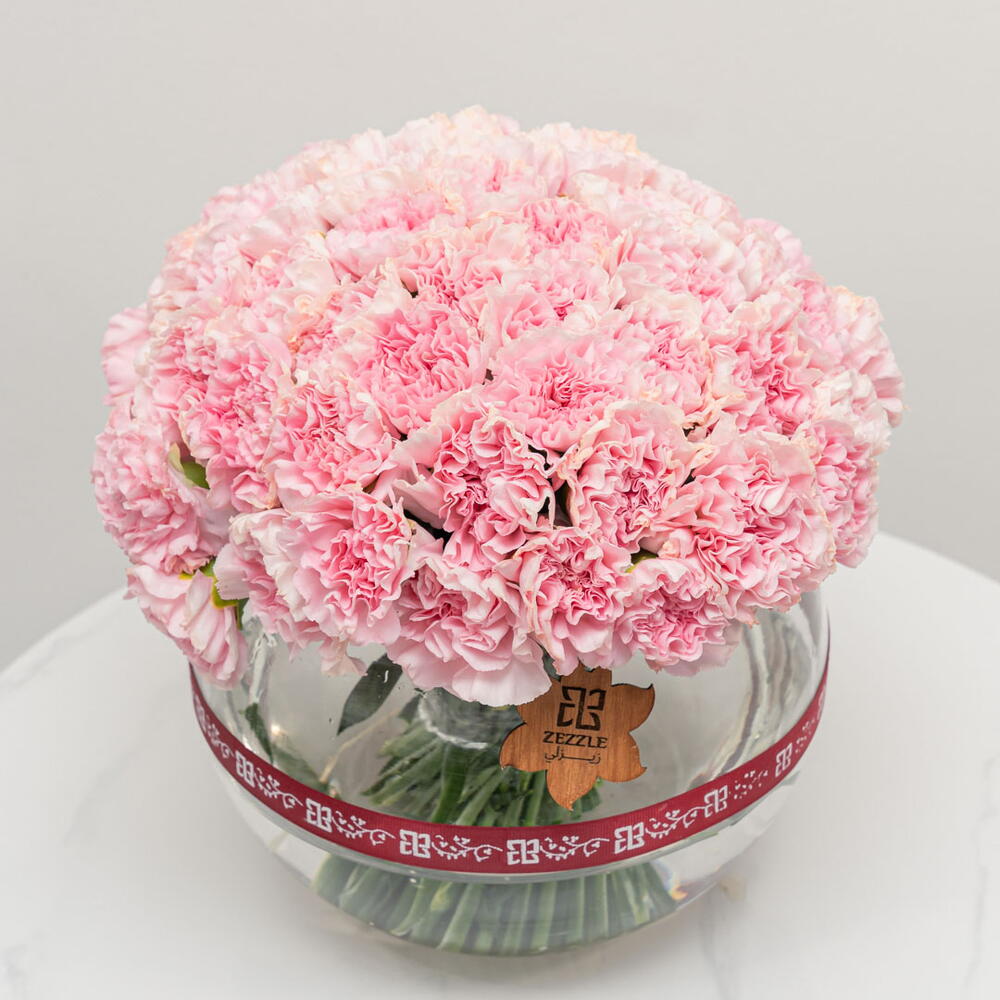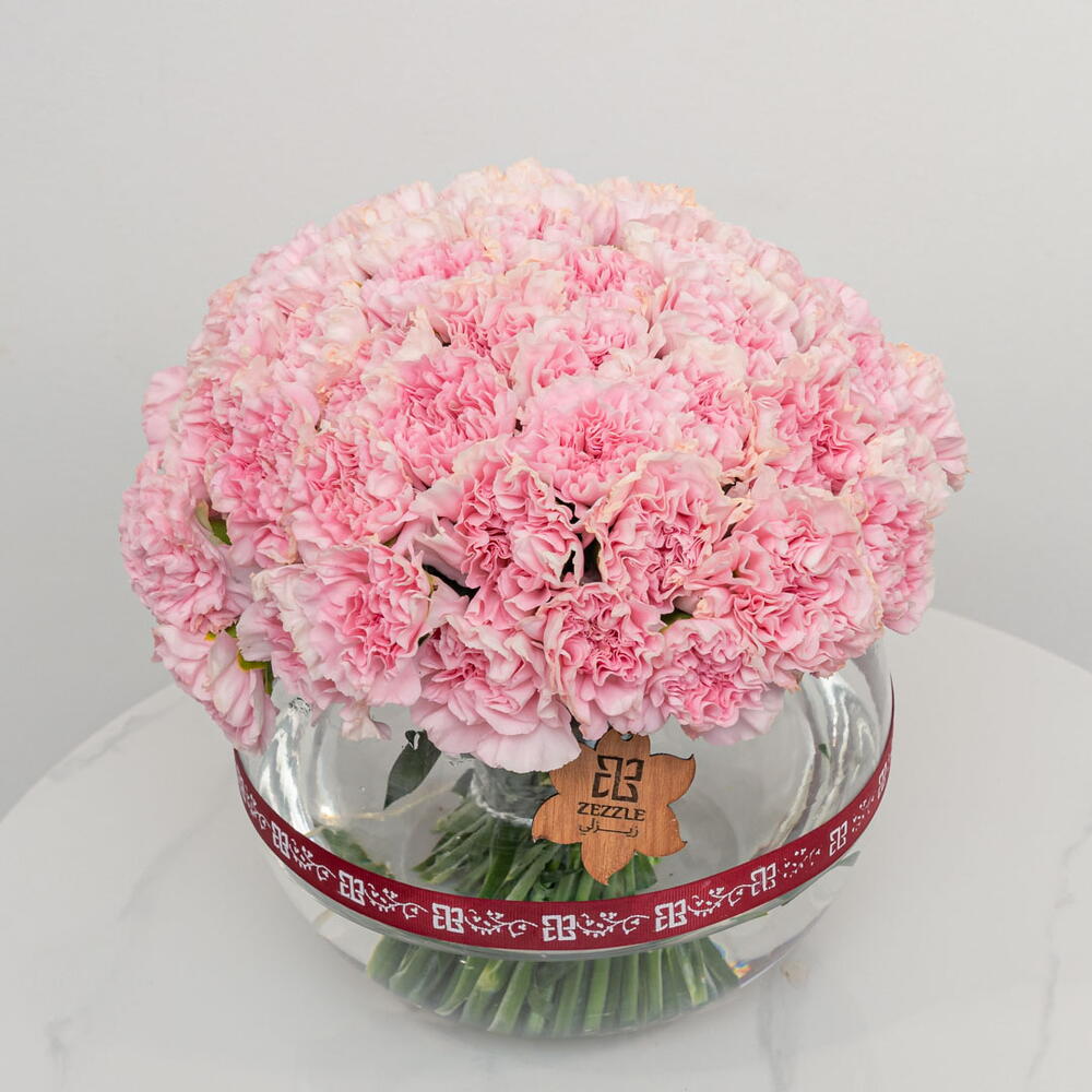 Plongez-vous dans le charme de cet ensemble exquis d'œillets rose carnation. Composé de 50 œillets roses délicieusement épanouis, rassemblés avec soin dans un élégant bol 20D. Sa splendeur vibrante ajoutera sans aucun doute un souffle de fraîcheur et une aura d'élégance romantique à votre décor. Idéal pour apporter une touche de beauté naturelle à tout intérieur et créer une allure de sophistication discrète.