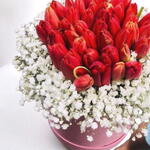Un coffret floral élégant et audacieux, orné d'une magnifique composition de tulipes d'un rouge éclatant, entourée d'un délicat nuage de gypsophiles blanches. Symbole d'amour passionné et de pureté, cette composition est le cadeau idéal pour une attention romantique, une occasion spéciale ou tout simplement pour égayer la journée de quelqu'un. Présentée dans une élégante boîte à chapeau ronde, elle est à la fois moderne et intemporelle, prête à impressionner dès le premier regard. Pour un entretien optimal, conservez la composition dans un endroit frais et ombragé, à l'abri de la lumière directe du soleil et des courants d'air. Vaporisez légèrement les fleurs quotidiennement et veillez à ce que la mousse florale à l'intérieur reste légèrement humide pour préserver leur fraîcheur.