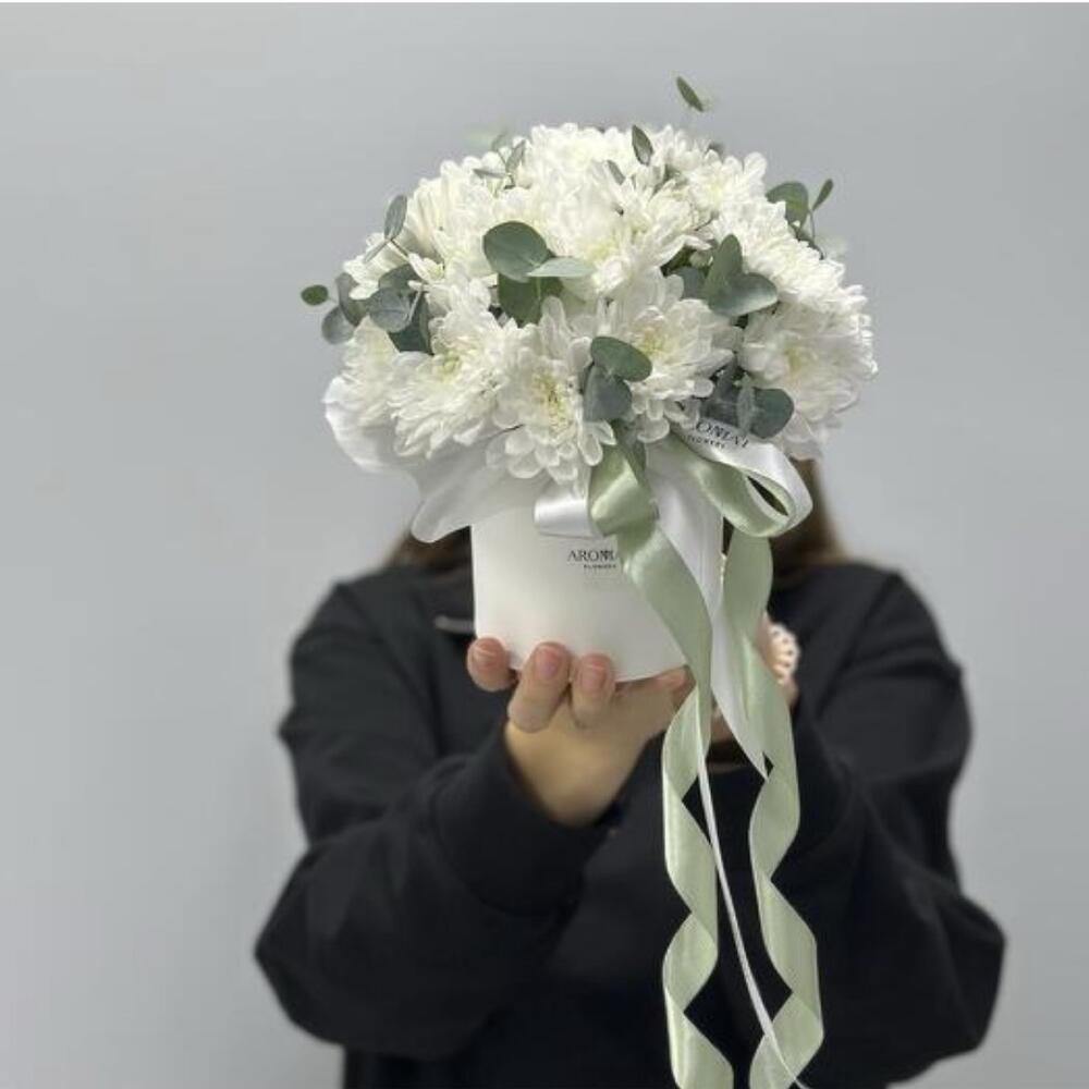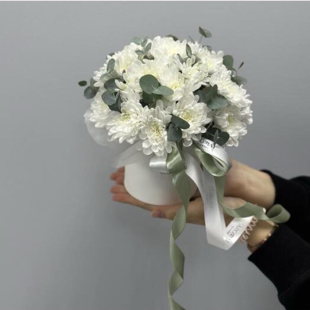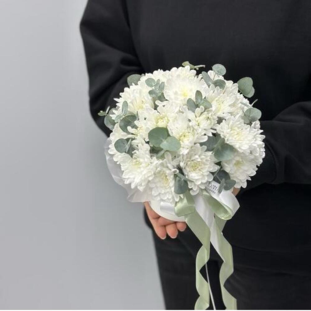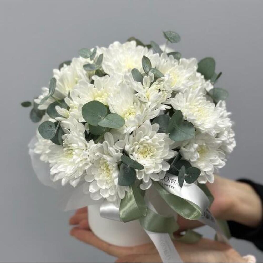 Eucalyptus - 4 pce Box - 1 pce chrysanthème blanc - 7 pce