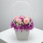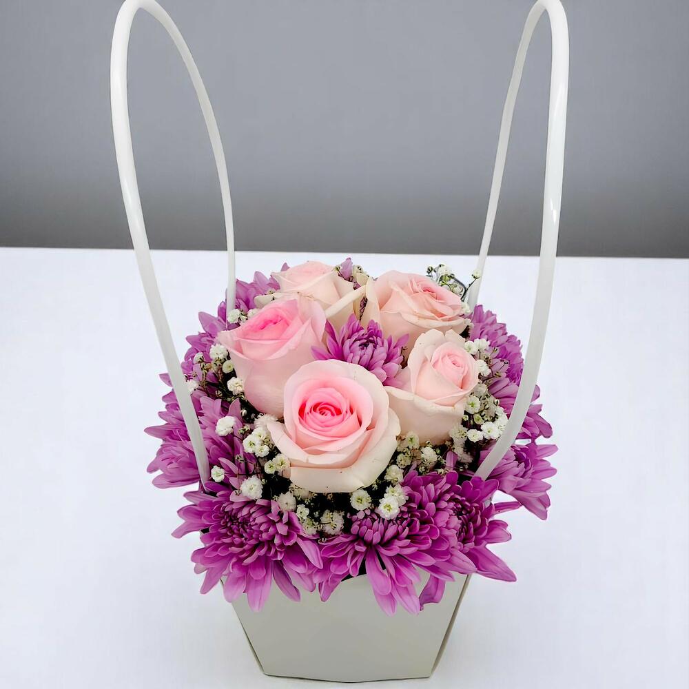 Rose rose 50 cm - 5 pce chrysanthème violet - 6 pce fleur de gypsophile - 4 pce