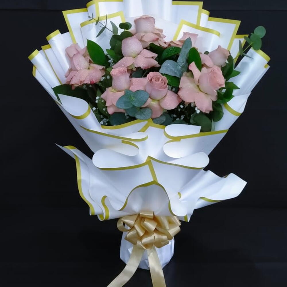 Découvrez l'ajout parfait à toute occasion avec ce superbe bouquet mono. Façonné à la main avec 10 magnifiques roses cappuccino, rehaussé de 5 branches d'eucalyptus frais, ce bouquet dégage un charme captivant. Magnifiquement enveloppé dans 5 feuilles de papier blanc immaculé, ce bouquet garantit l'élégance jusque dans les moindres détails. Faites-vous plaisir ou illuminez vraiment la journée de quelqu'un avec ce mélange envoûtant de beauté florale.