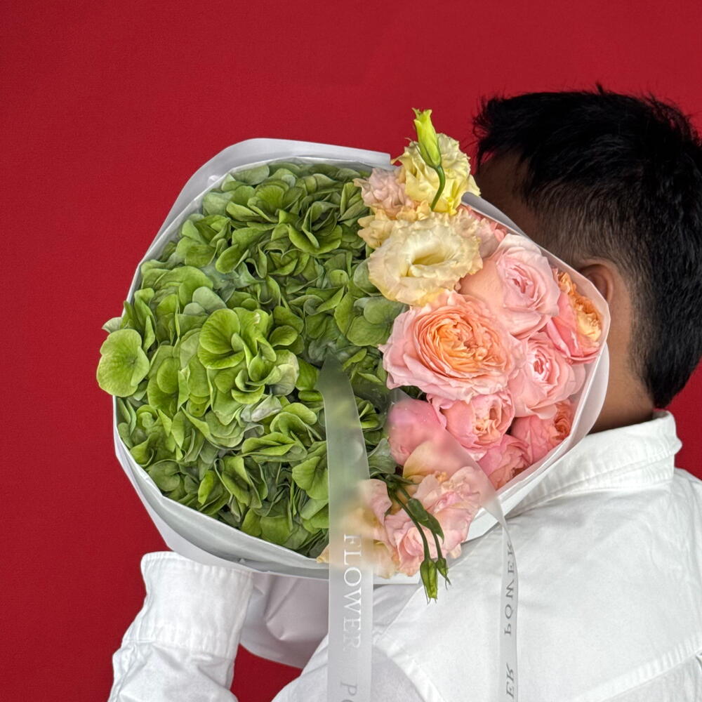 Un bouquet captivant et charmant présentant un mélange délicat d'hortensias verts, de roses, de roses spray et d'eustomas. Cette composition Garden Secret saisit l'essence d'un sanctuaire caché — un cadeau élégant et attentionné pour le quotidien, parfait pour une pendaison de crémaillère, pour des notes de remerciement ou simplement pour égayer leur journée.