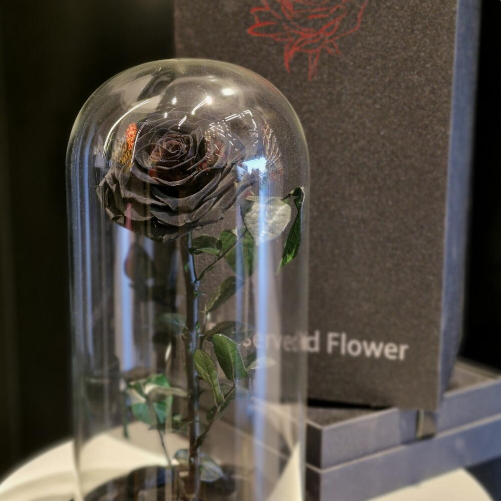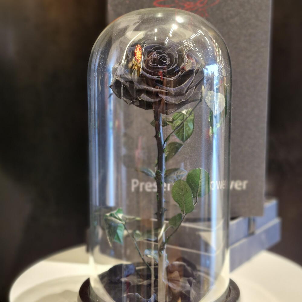 CLOCHE EN VERRE- ROSES ÉTERNELLES | Noir ( GRAND)