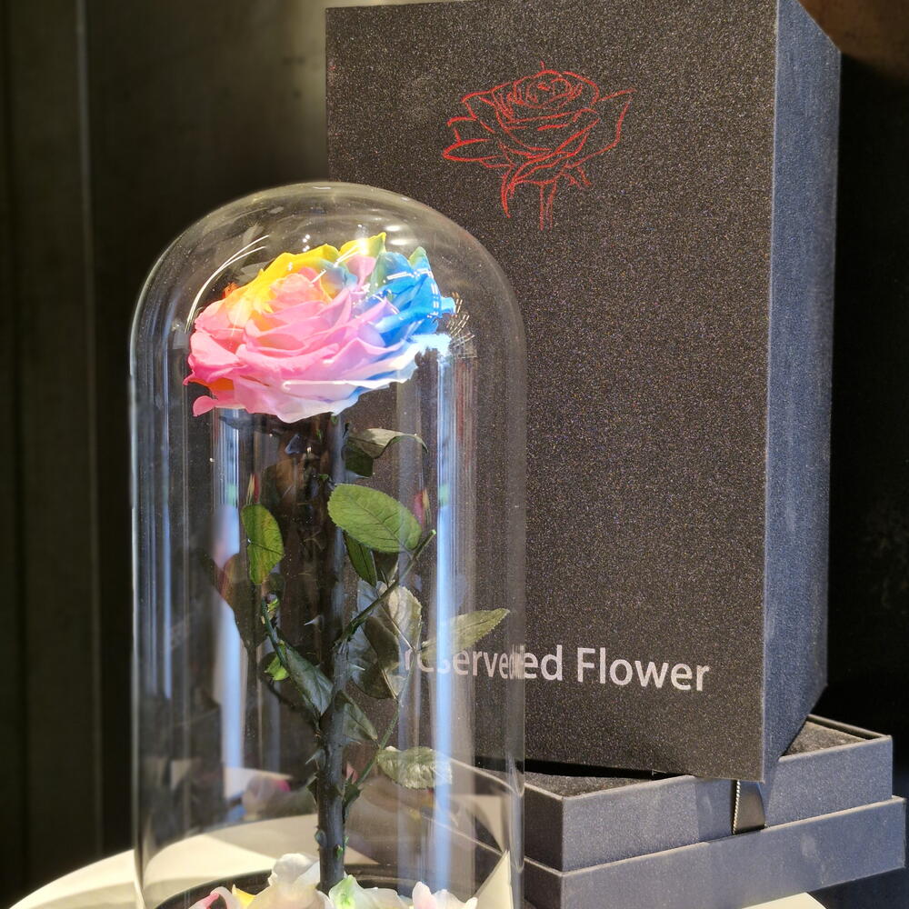 CLOCHE EN VERRE- ROSES ÉTERNELLES | Arc-en-ciel (GRAND)