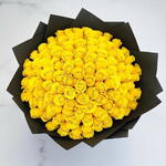 Laissez-vous séduire par l'éclat vibrant de ce bouquet mono, composé de 101 roses jaunes captivantes. Chaque fleur est sélectionnée à la main, préservant ainsi avec élégance son charme unique et sa fraîcheur. Ce bouquet exprime avec brio la joie et transforme les moments ordinaires en moments inoubliables. Parfait pour célébrer toute occasion ou simplement pour égayer la journée de quelqu'un.