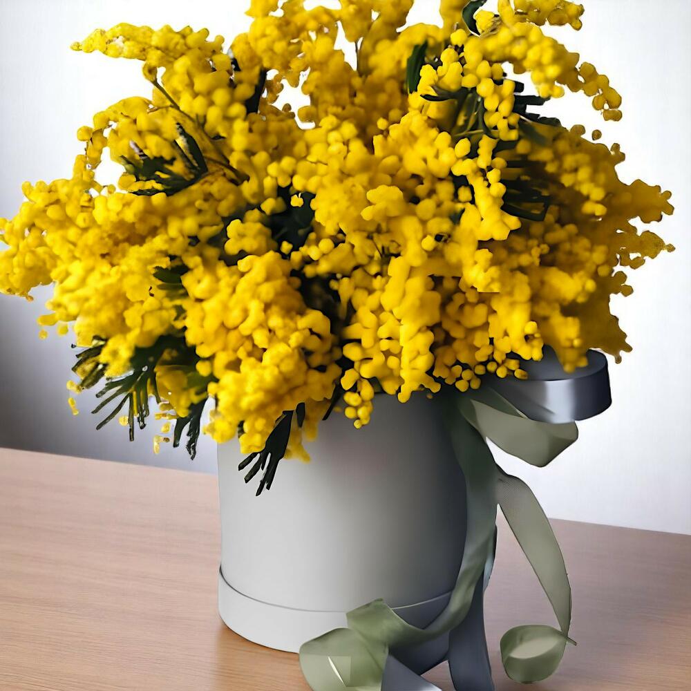 D'une élégance dorée et raffinée, ce coffret de sept mimosas capture l'essence même de la chaleur, de la joie et du renouveau. Présentées dans un élégant coffret, les fleurs délicates et vaporeuses du mimosa créent une esthétique à la fois luxueuse et naturelle. Symbole d'amitié, de positivité et de nouveaux départs, ce bouquet est le cadeau idéal pour égayer la journée de quelqu'un ou apporter une touche de soleil à n'importe quel espace. Le parfum délicat et la texture aérienne du mimosa confèrent à cette composition grâce et gaieté, insufflant sérénité et bonheur à chaque occasion.