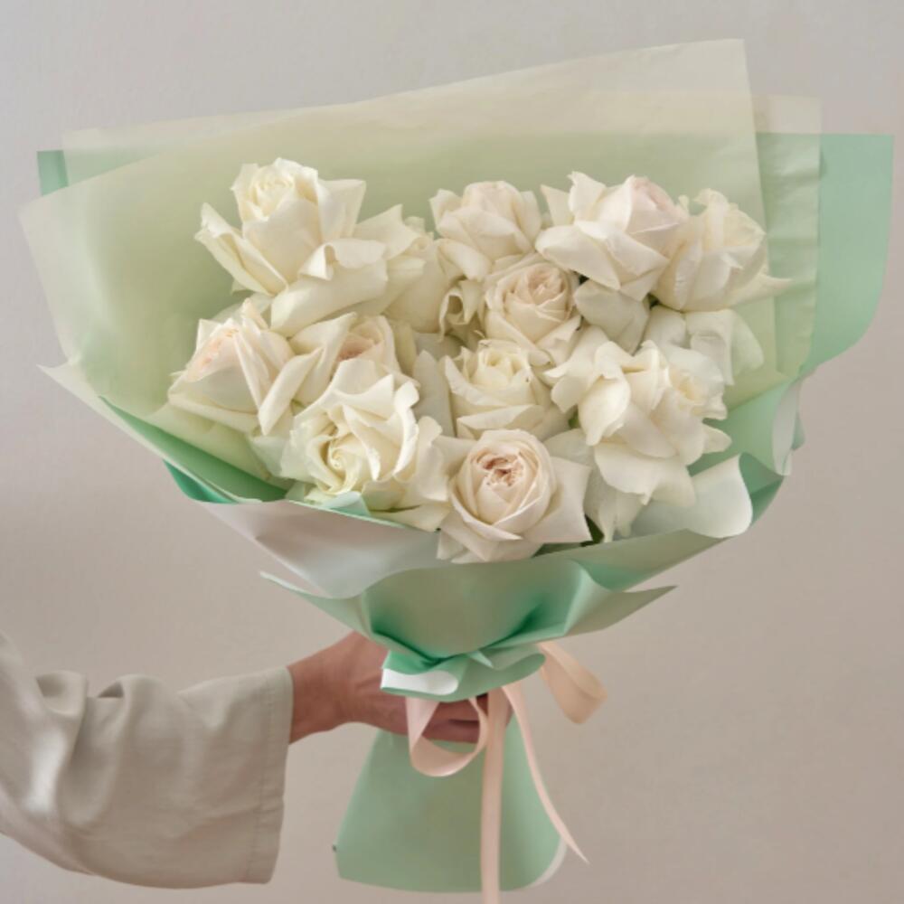 rose blanche - 12 pce feuilles de pistache - 1 pce