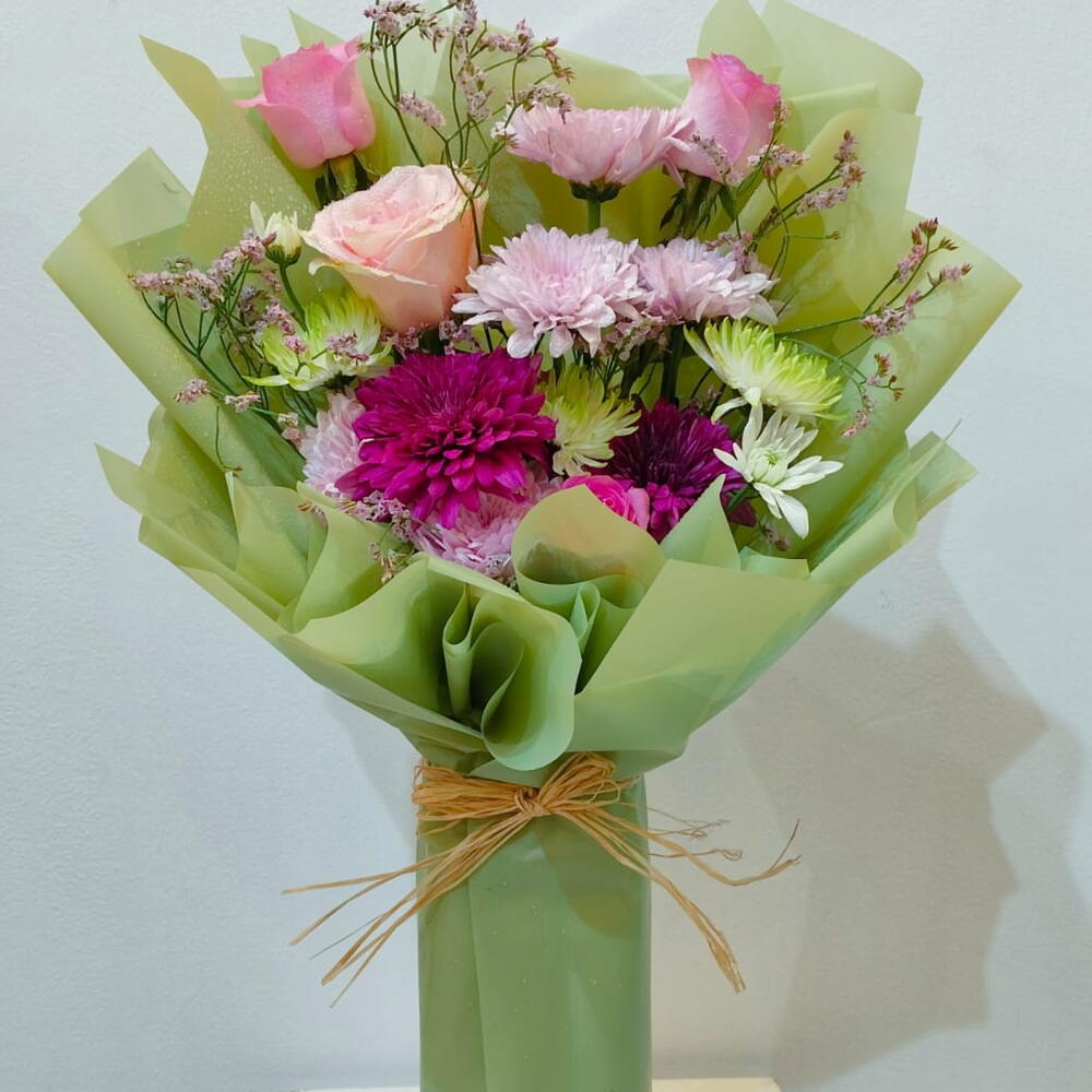 Pink rose - 3 pce Chrysanthème vert - 3 pce chrysanthème violet - 4 pce chrysanthème rose - 7 pce