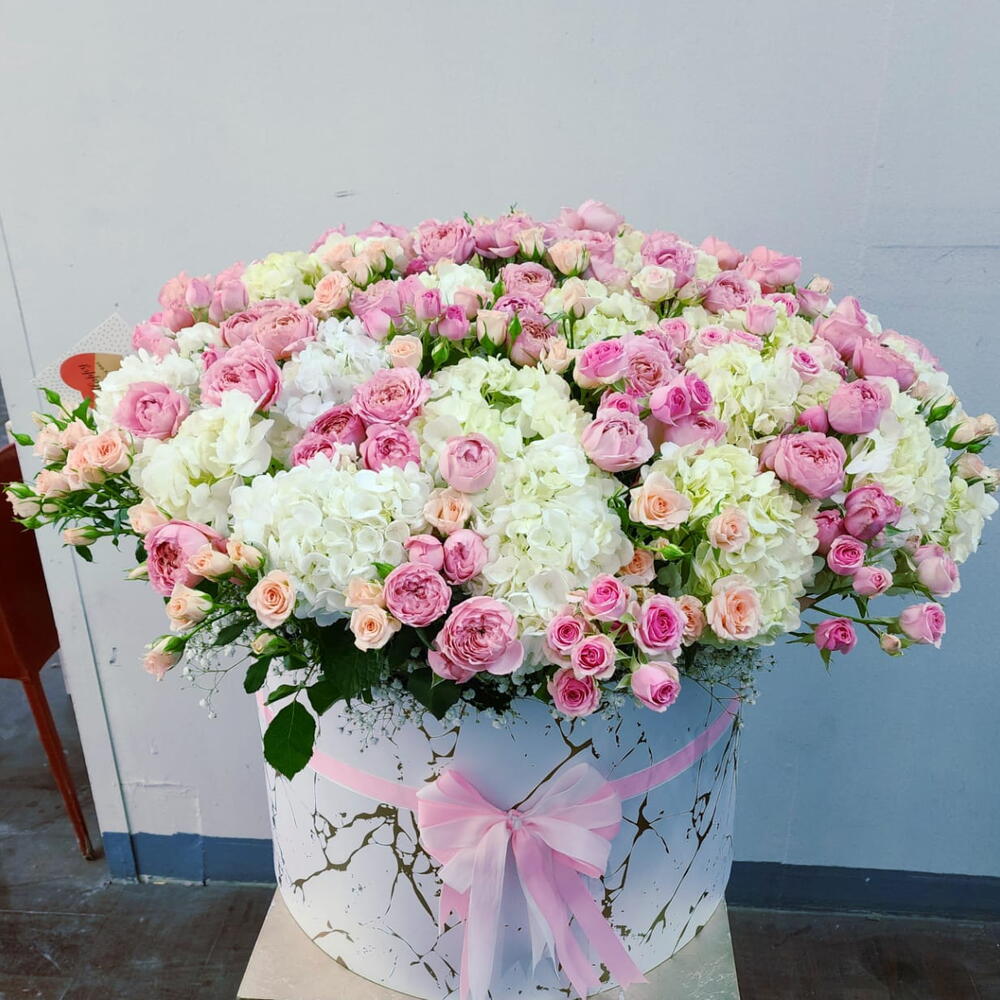 hortensia - 25 pce juleitta bouquet - 4 pce bouquet de mini-roses roses - 3 pce botte de mini-roses rose pâle - 2 pce