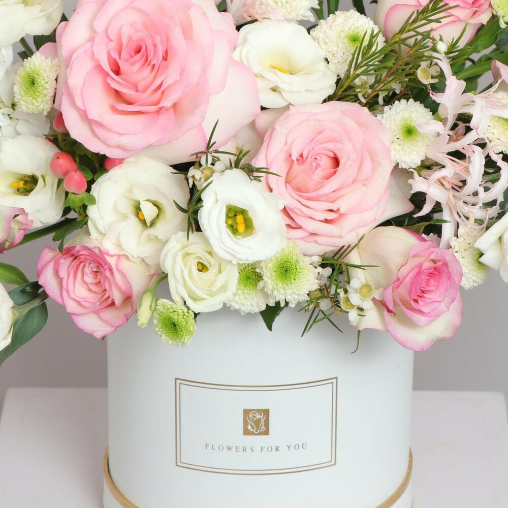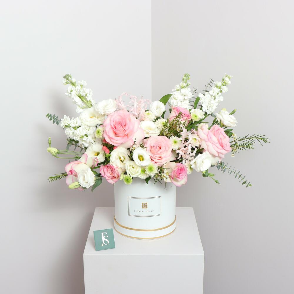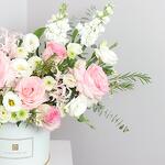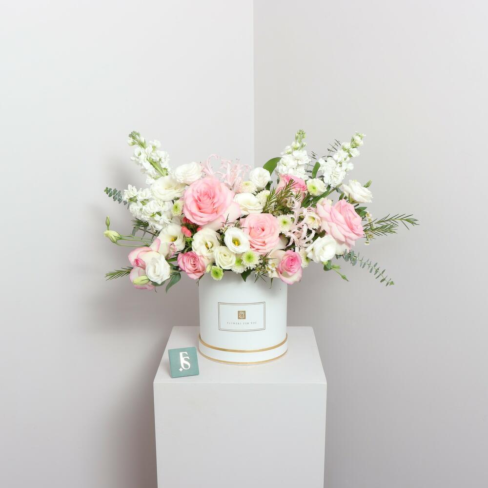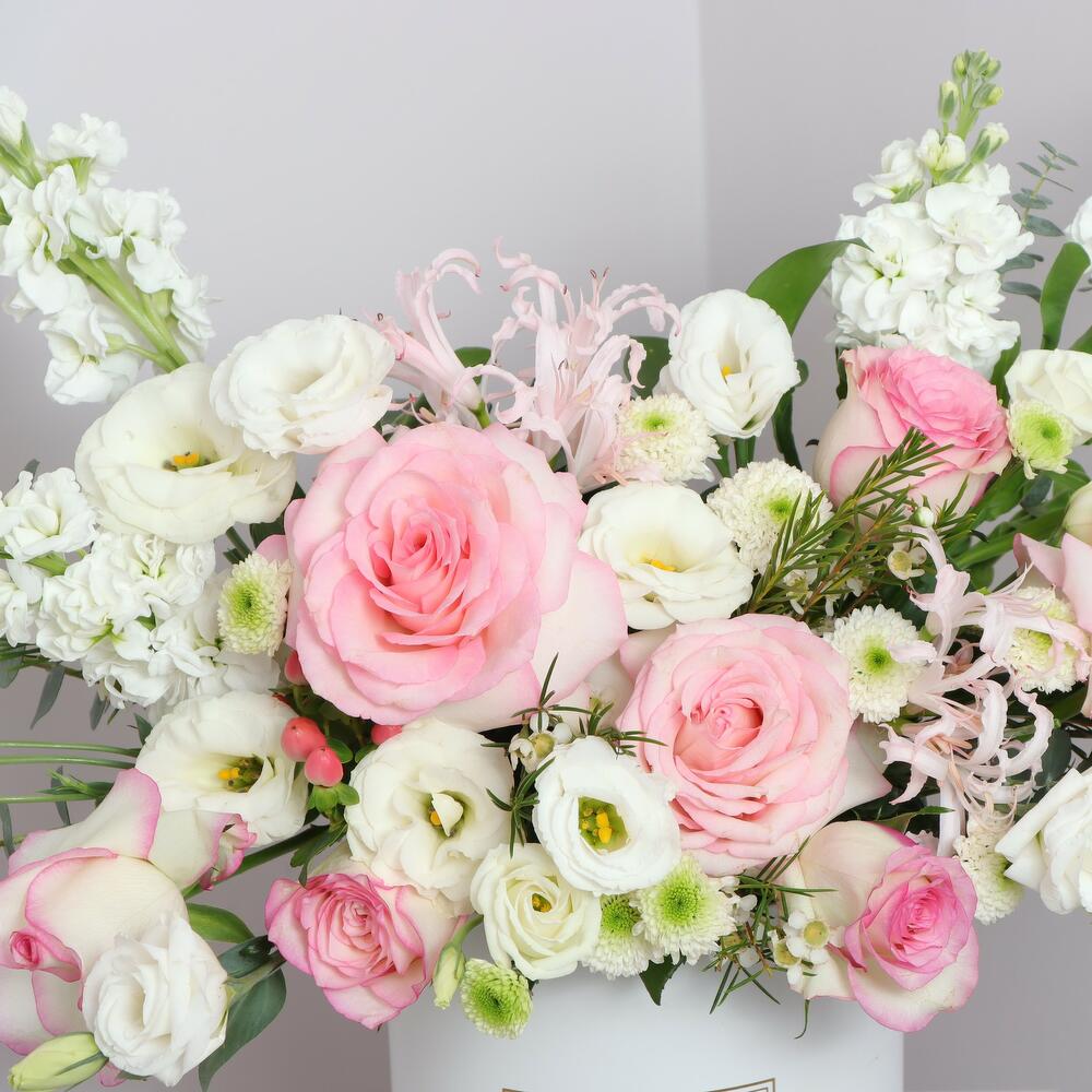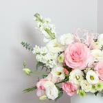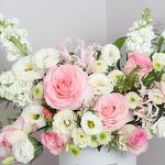 Profitez d'une magnifique présentation de fleurs roses pâles et blanches avec Heavenly Hues, la boîte florale parfaite pour toutes les occasions! Notre composition, réalisée avec savoir-faire, fait une impression saisissante dans n'importe quelle pièce. Égayez votre journée avec Heavenly Hues—vous ne le regretterez pas.