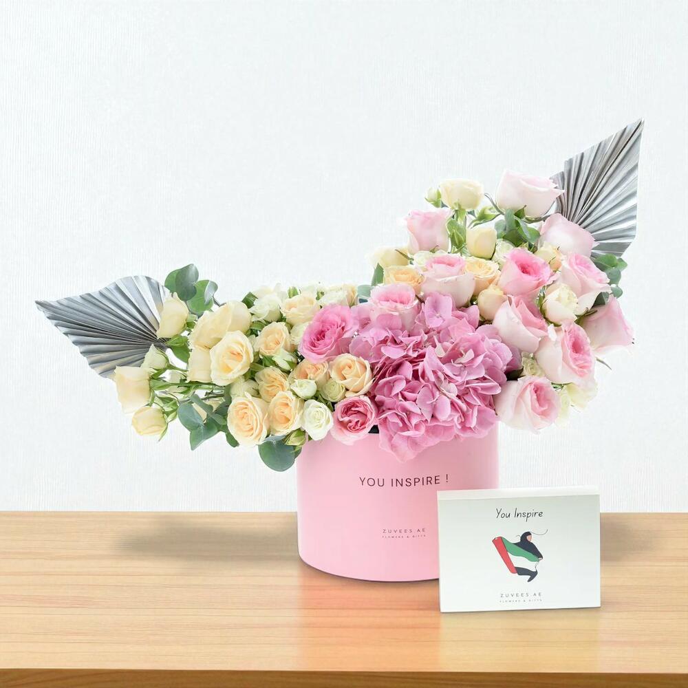 Découvrez le coffret chocolat « Heirloom in Bloom », un mariage harmonieux de majesté florale et de gourmandise, conçu pour célébrer l'élégance intemporelle des femmes émiraties. Ce luxueux coffret cadeau de Dubaï allie fleurs éclatantes et chocolats exquis, présenté dans un luxueux coffret Zuvees rose orné de l'inscription « YOU INSPIRE », symbole d'unité, de force et de grâce éternelle.