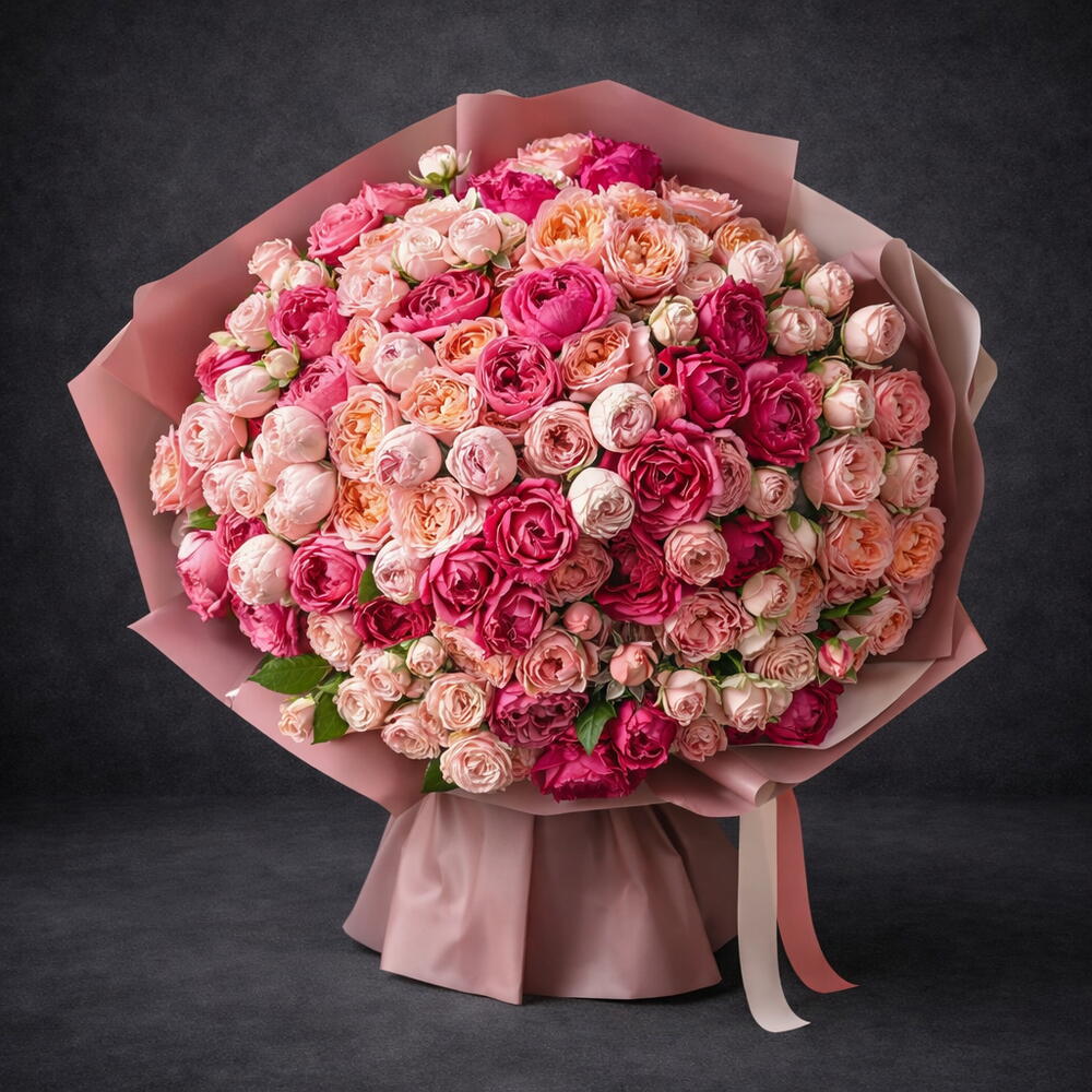 23 Stems of Julieta Peony spray roses blooming in special wrapping bouquet