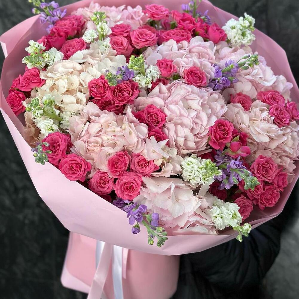 HORTENSIA 7 MATTHIOLA MIX 10 ROSES SPRAY 10 DANS UN BOUQUET