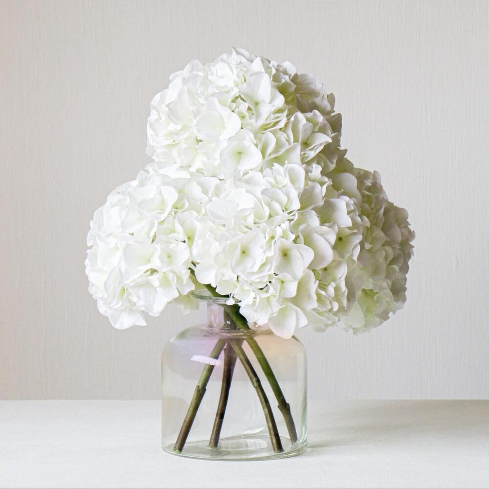 hortensia blanc - 5 pce vase en verre 15 x 15 - 1 pce