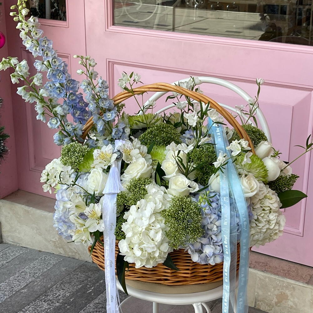 La couture florale bleue, verte et blanche de Plaisir est quelque chose qu'ils n'oublieront pas de sitôt - luxueuse, disposée au milieu d'une profusion d'hortensias blancs et de roses ornées de fleurs bleues et vertes, elle convient à toute occasion, que ce soit pour un homme ou pour une femme - vous les époustouflerez tout simplement !