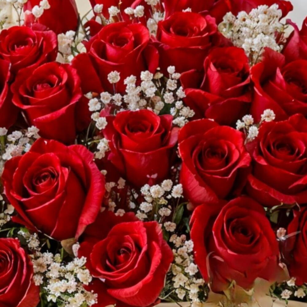 gypsophile blanche - 10 pce red roses - 61 pce