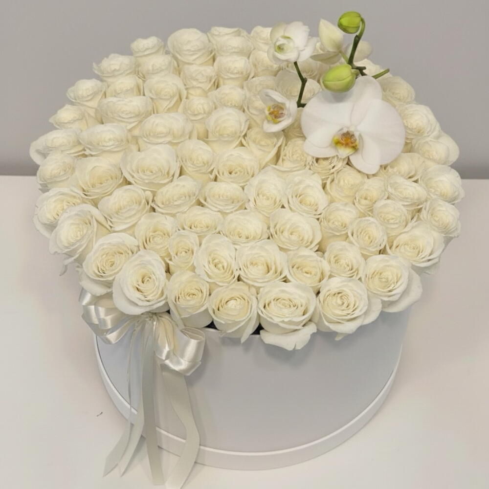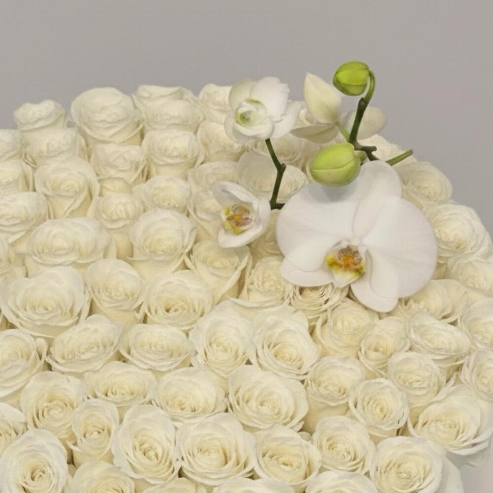 Découvrez l'élégance et la pureté avec notre coffret Fleurs en boîte. Il comprend 91 roses blanches en polyester finement détaillées, disposées de manière artistique autour d'une seule orchidée époustouflante. Le tout est joliment emballé dans une grande boîte blanche. Ce coffret est parfait pour illuminer votre espace de vie ou comme cadeau attentionné pour un être cher. Ajoutez une touche de beauté intemporelle à votre environnement avec cet exquis ensemble floral.
