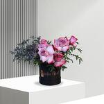 Petite Bella Box de fleurs violettes mélangées.