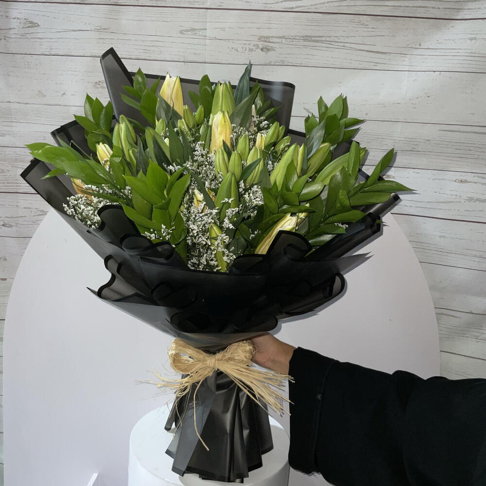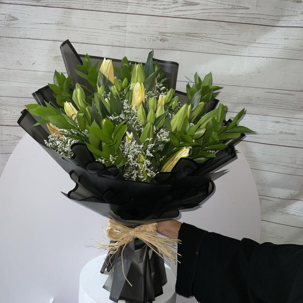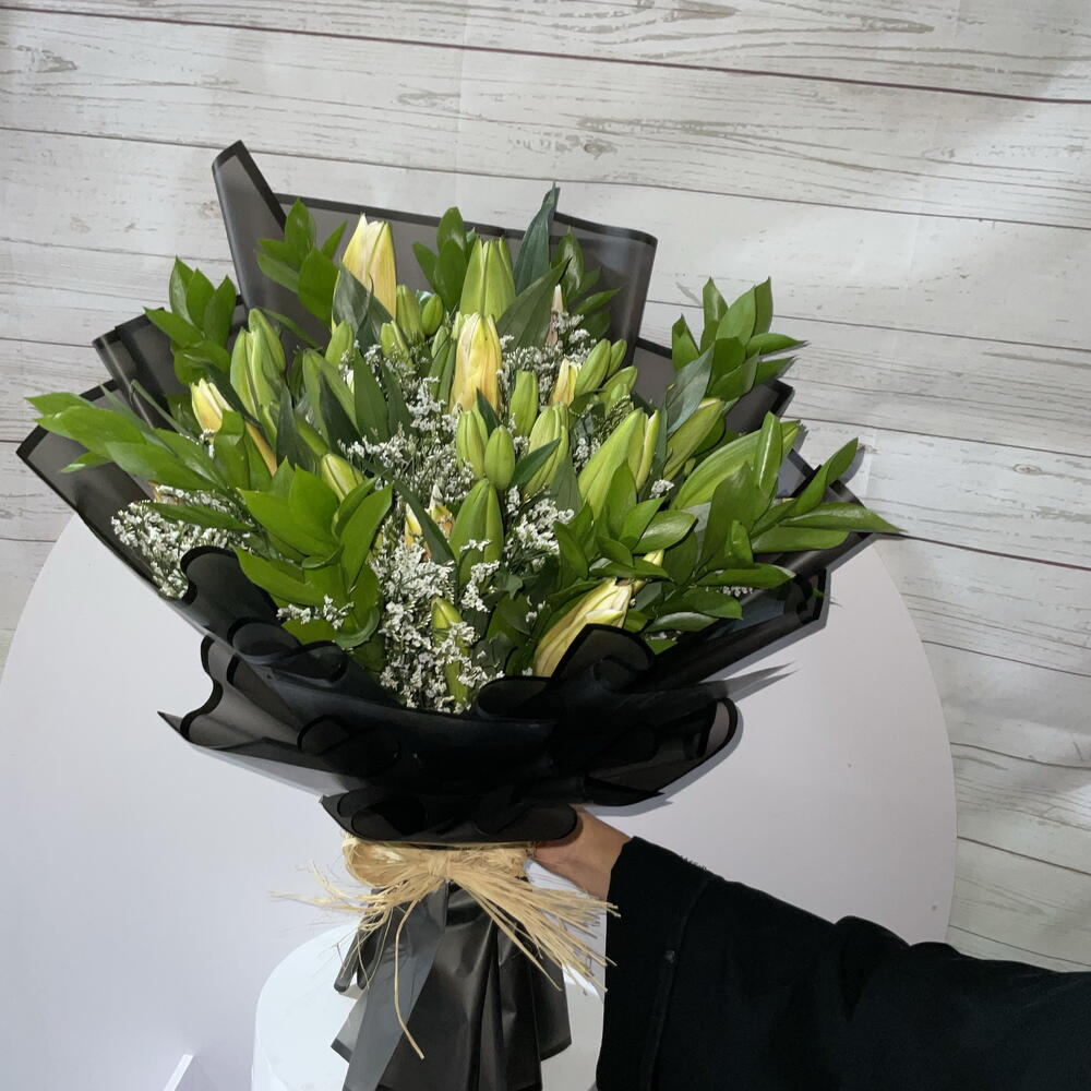 Ruscus - 15 pce Limonium - 10 pce wrapping paper - 5 pce fleurs de lys - 13 pce