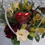 Red rose - 2 pce Alstroemeria - 2 pce carnation white - 1 pce gypsophile blanche - 1 pce lindt chocolate - 1 pce fougère d'asperge - 2 pce lisianthus orange - 2 pce