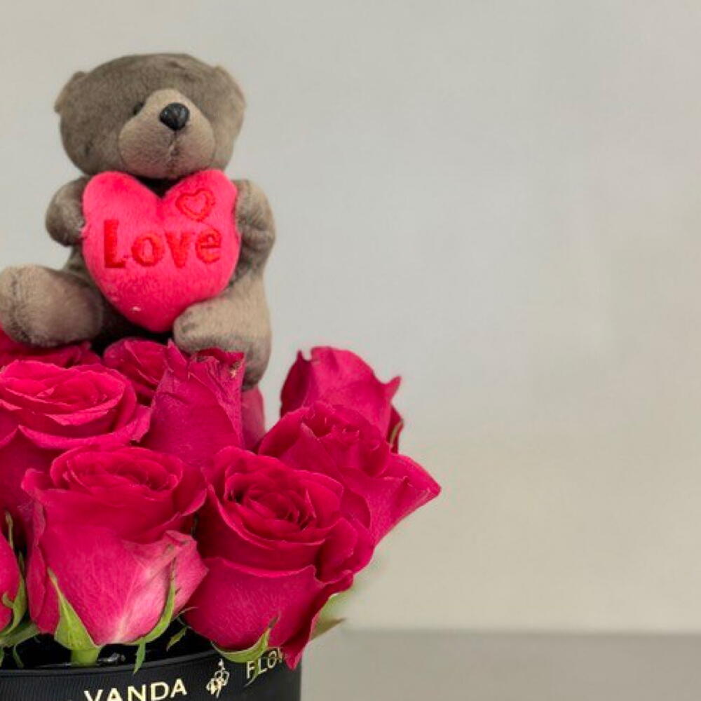 Red rose - 10 pce boîte noire - 1 pce petit ours en peluche marron - 1 pce