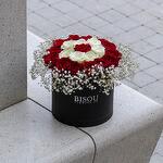 Red rose - 10 pce White rose - 5 pce Gypsophila - 5 pce