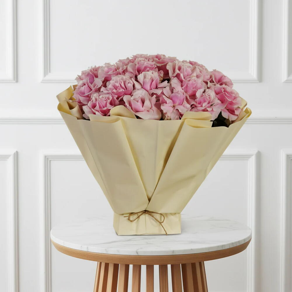 Loyalist – 25 roses roses dans un emballage crème | bouquet de roses roses de luxe | cadeau d'anniversaire | fleurs pour anniversaire | bouquet romantique