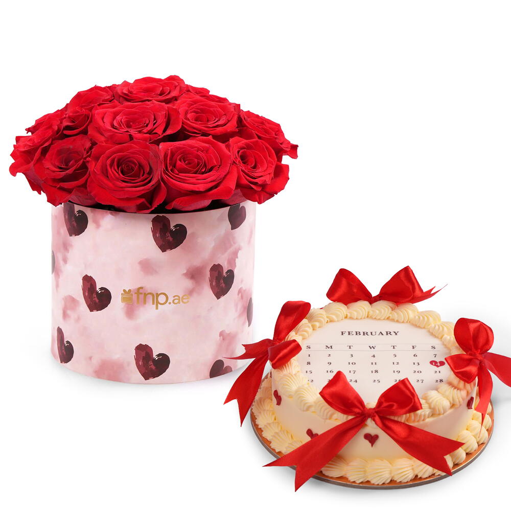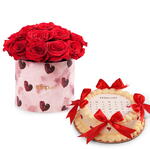 Boîte de roses rouges de luxe avec gâteau Red Velvet
