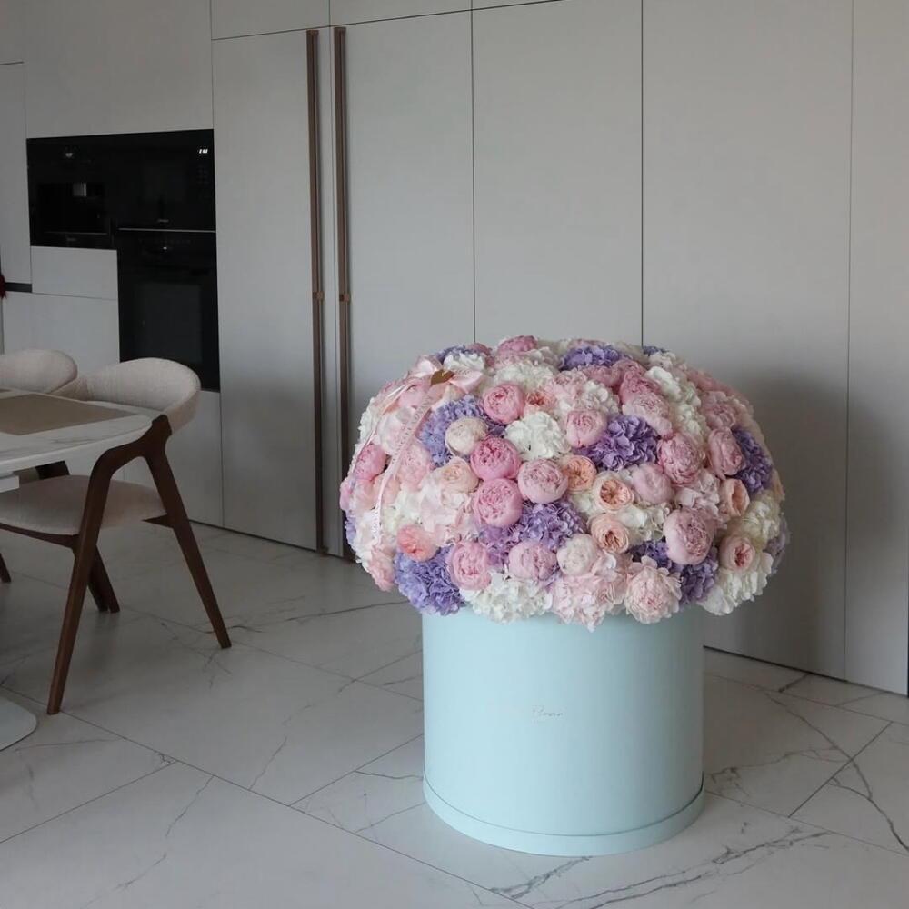 Un arrangement opulent, cette boîte de luxe déborde de la beauté apaisante des hortensias, de l'abondance luxuriante des pivoines et du charme délicat des roses de jardin. Elle incarne des sentiments d'élégance sereine, d'admiration profonde et de joie pure. Ce cadeau magnifique est parfait pour célébrer une étape spéciale, un anniversaire important, la Fête des Mères, ou simplement pour offrir une expression luxueuse de gratitude.