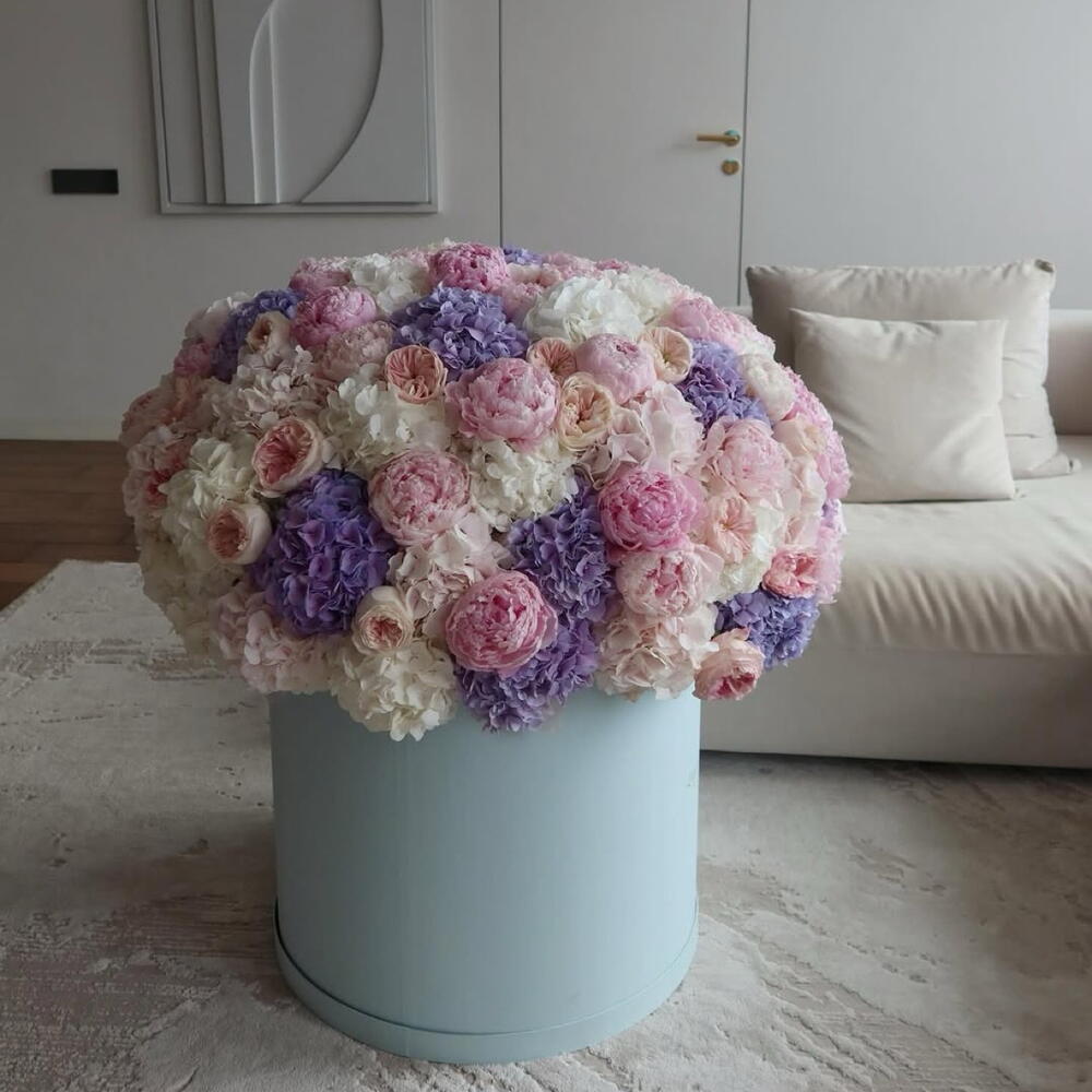 Le Rêve Azur: une boîte de luxe d'hortensias, de pivoines et de roses de jardin