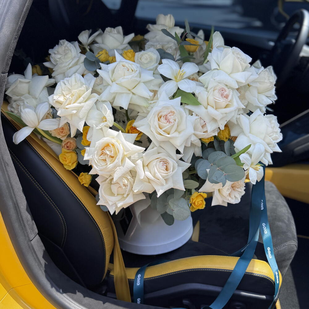 Fêtez chaque arrivée en grande pompe avec notre Bouquet de Fleurs de Bienvenue pour Voiture de Luxe, conçu spécialement pour la décoration de voitures haut de gamme et les occasions de retour. Composé d'un élégant mélange de fleurs fraîches blanches et jaunes — symbolisant pureté, élégance et joie — ce bouquet est conçu pour sublimer la beauté des voitures de luxe. Parfait pour la décoration de voiture, les surprises de retour et les événements spéciaux, nous proposons également des combinaisons de couleurs personnalisées pour assortir à votre style et à votre thème.