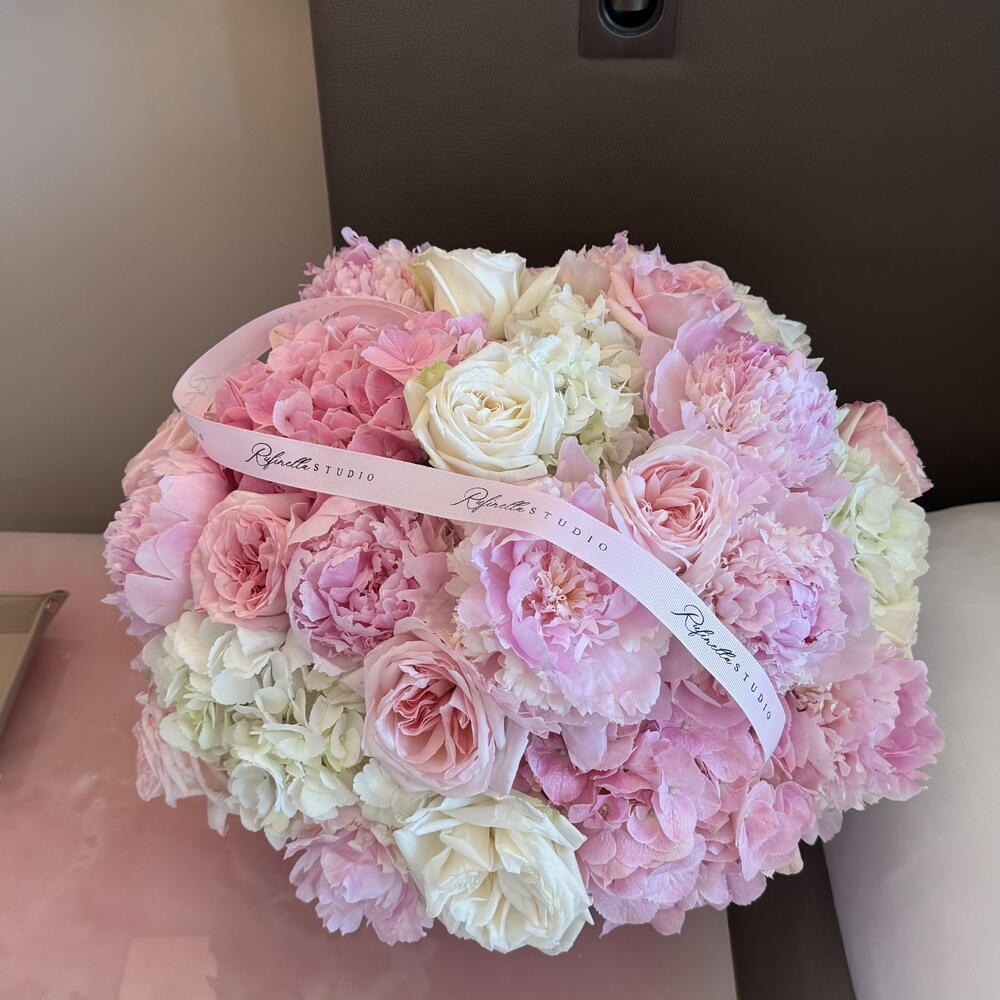 pivoines roses - 10 pce hydrangeas pink - 3 pce hortensias blancs - 4 pce roses ohara roses et blanches - 19 pce